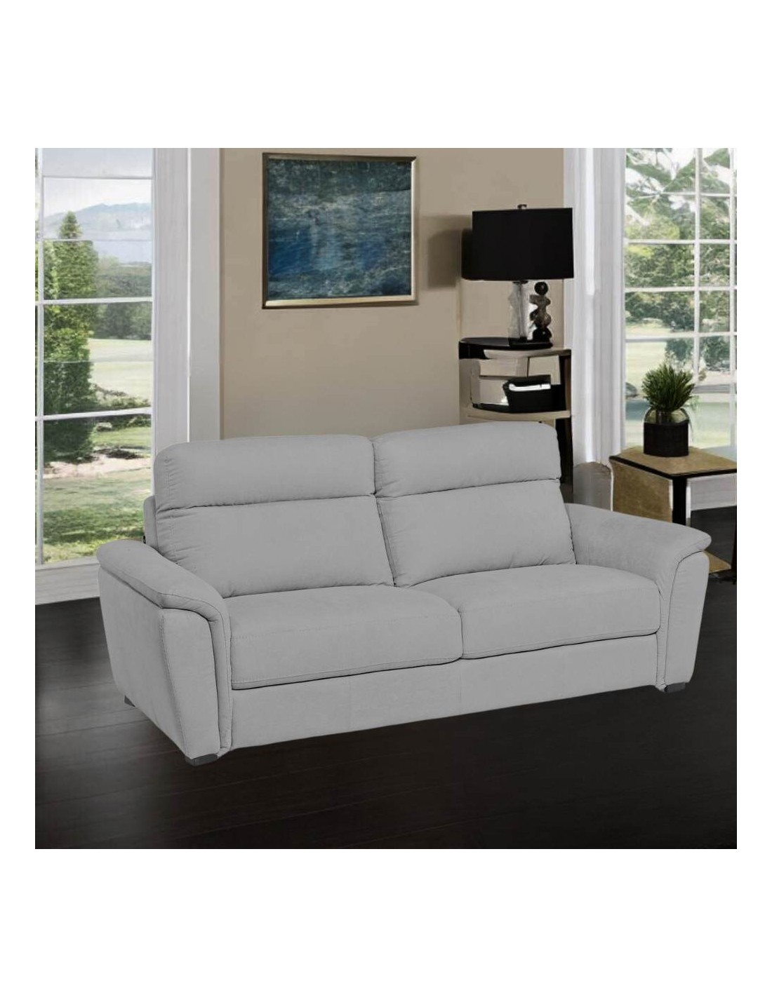 Divano 3 posti Gonzaga tessuto Luna20 grigio poggiatesta regolabili