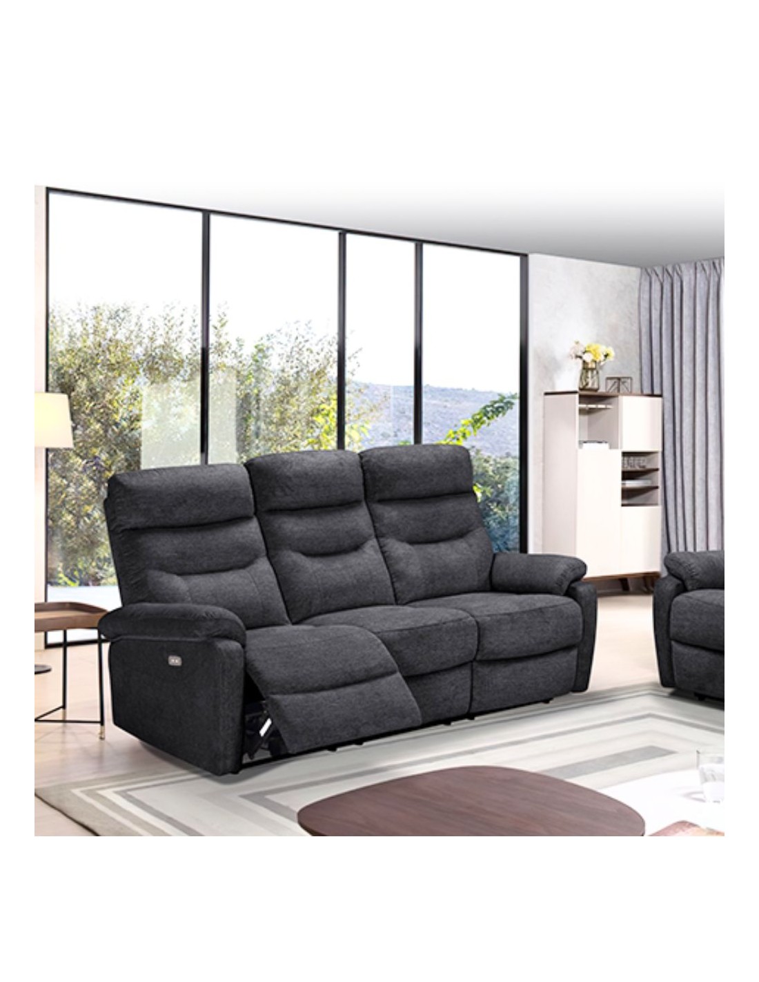 Il divano Brienz 3 posti è perfetto per completare il tuo living o il tuo salotto. E’ dotato di due recliner elettrici che consentono agli ospiti di sedersi scegliendo la posizione desiderata tramite semplici pulsanti posti ai lati del divano. Cuscini, seduta e braccioli, sono imbottiti di schiuma e garantiscono il massimo comfort. Questo divano è prodotto con materiali di qualità per durare nel tempo.