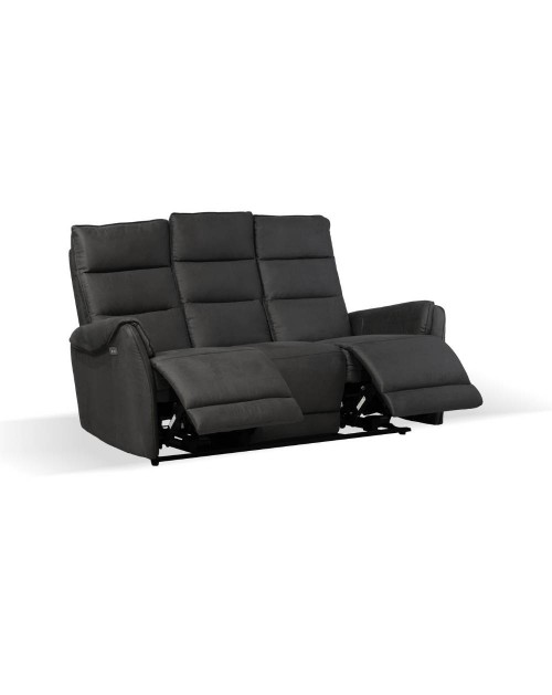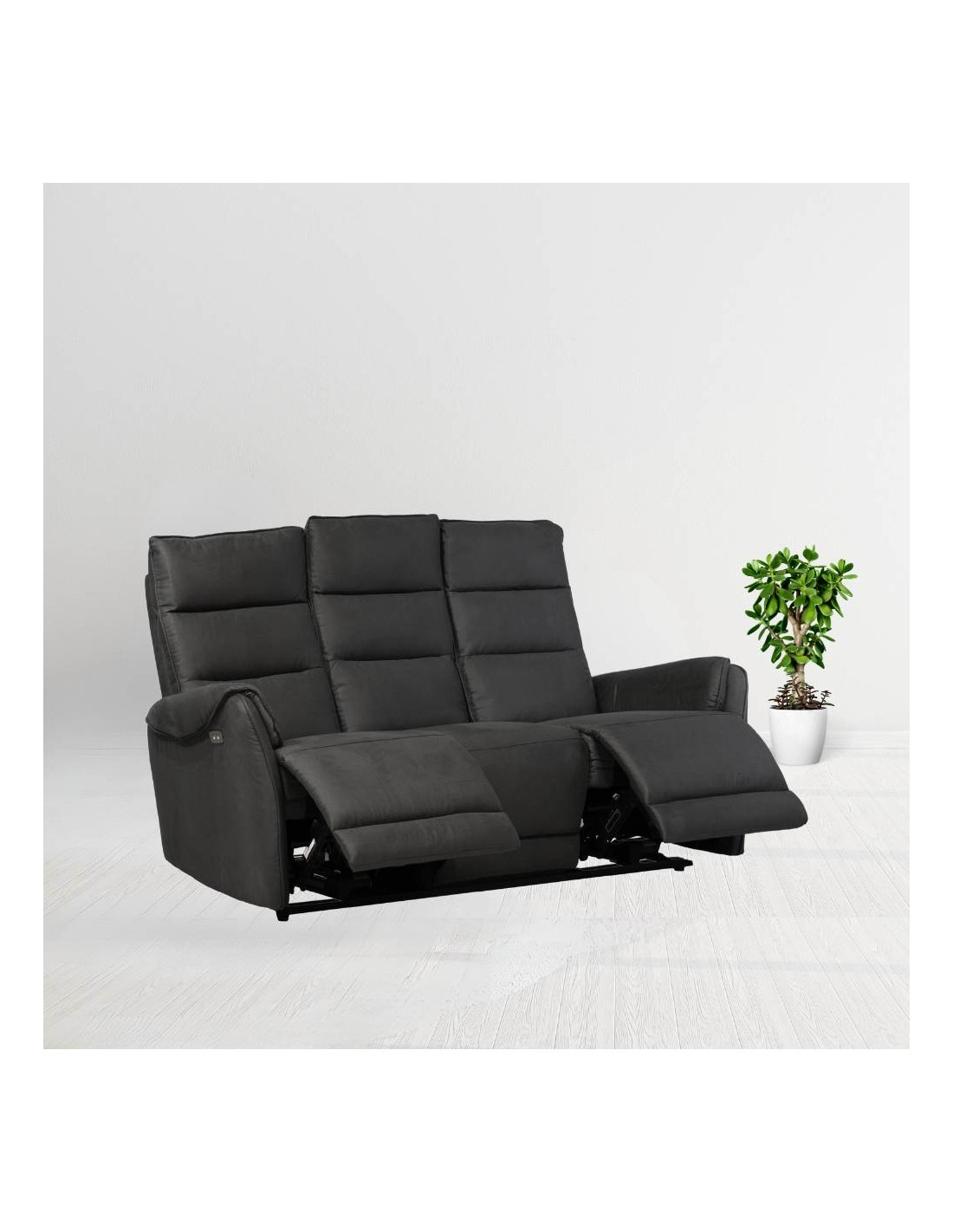 Divano 3 posti 2 recliner elettrici effetto nabuk grigio Thun