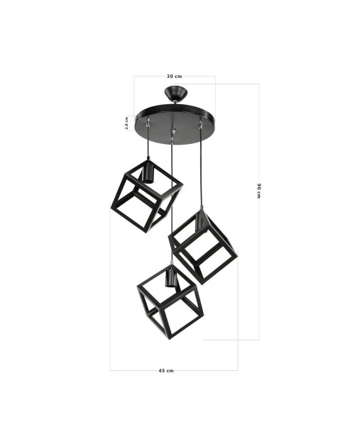 Lampada a sospensione 3 cubi nero Agatha MDL3790