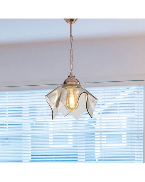 Lampada a sospensione rame e vetro fumè Volga MDL3782