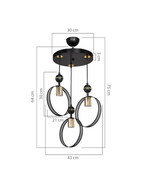 Lampada a sospensione con tre portalampade a cerchio Esin MDL4423