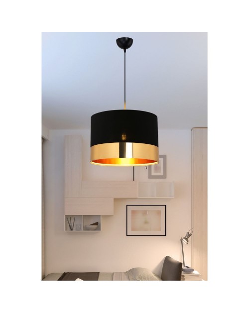 Lampada a sospensione tessuto nero fascia oro Alfina ASZ1665
