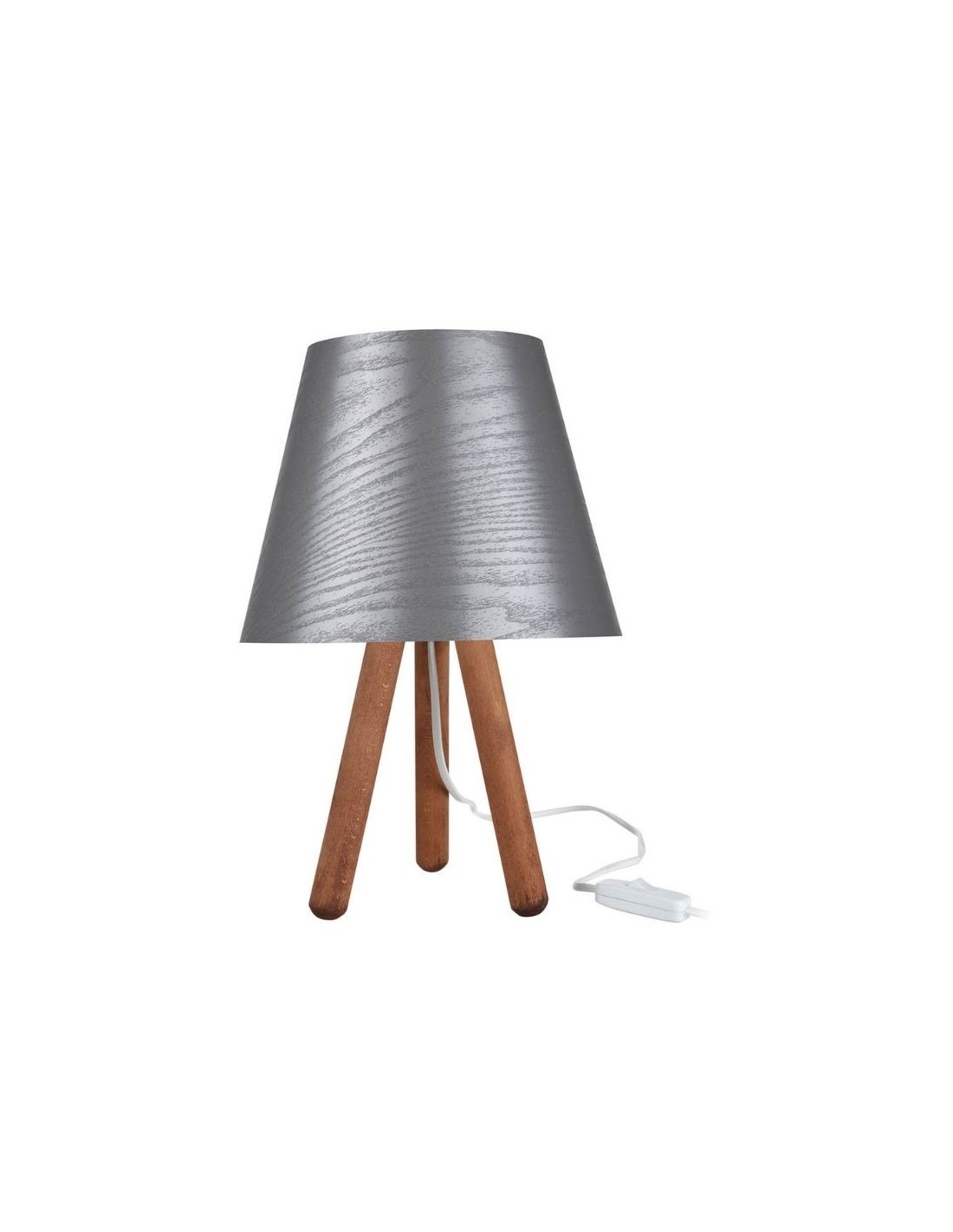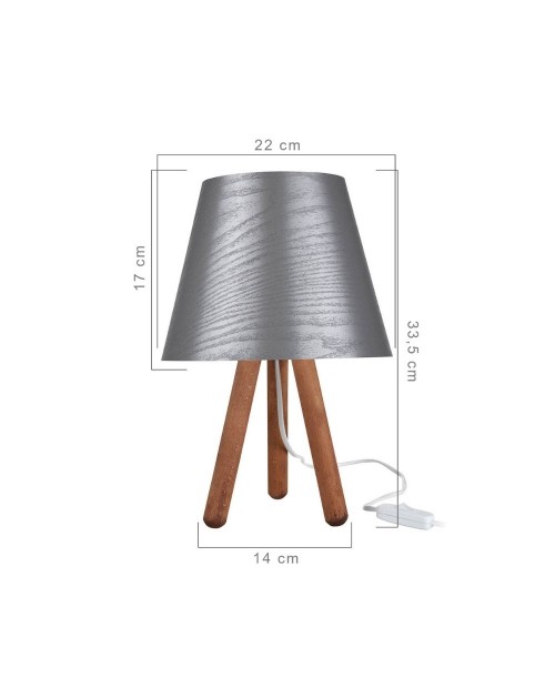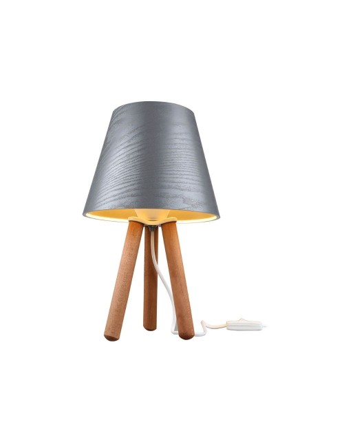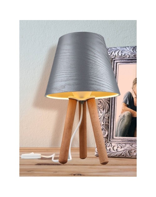 Lampada da tavolo treppiede legno e paralume grigio Pino ASZ1453