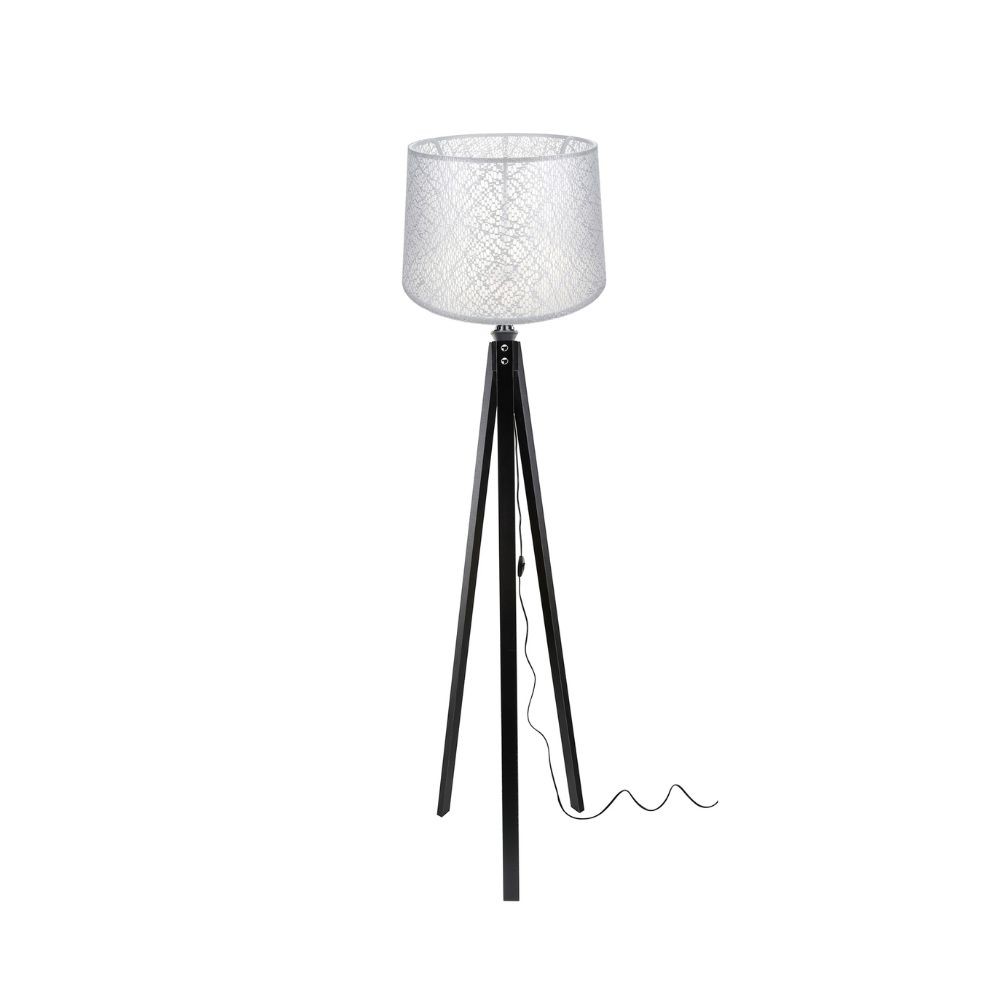 Lampada da terra treppiede nera con paralume bianco ricamo DECONE1181