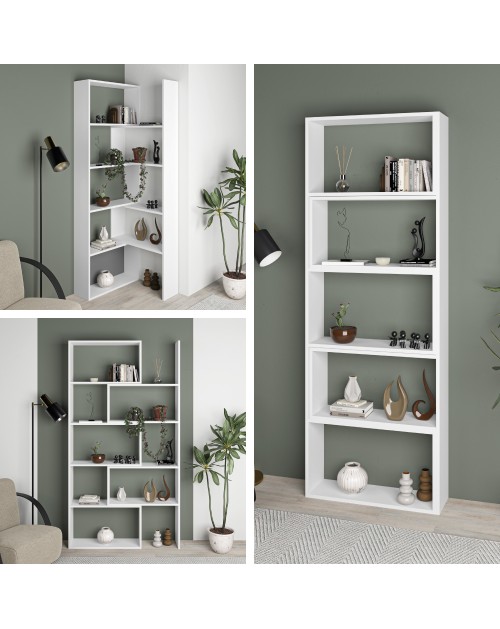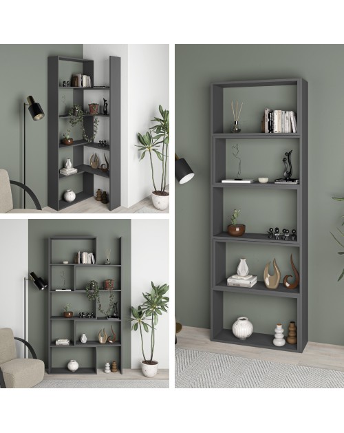 Il mobile ideale per ogni applicazione. La puoi usare come libreria, comodo scaffale o separè per dividere i tuoi ambienti. I ripiani sono robusti e spessi 18 mm, questo ti consentirà di appoggiare anche vasi o piante pesanti. Lo spazio tra i ripiani è di 34 cm. La struttura è in melaminico con bordi in ABS.