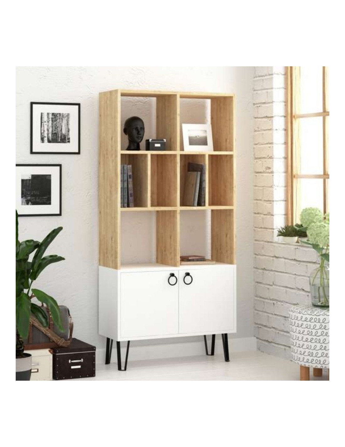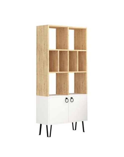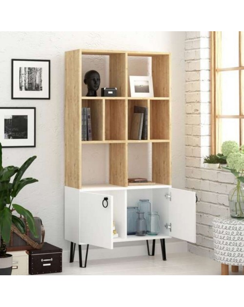 Libreria caratterizzata da un forte stile scandinavo. Bella, solida ma soprattutto funzionale. Puoi combinare l'utilizzo della classica libreria a giorno con due comode ante. Perfetto per arredare con originalità il tuo ufficio, lo studio oppure i tuoi ambienti di casa. I piedini e le maniglie in metallo donano un tocco di raffinatezza.