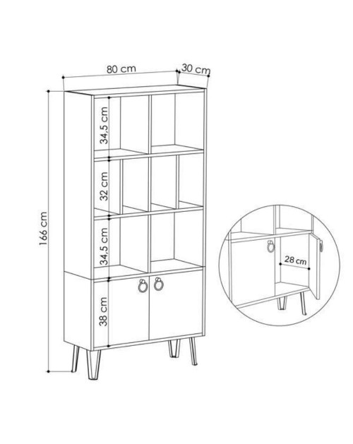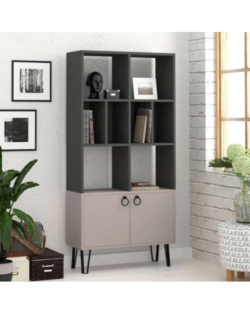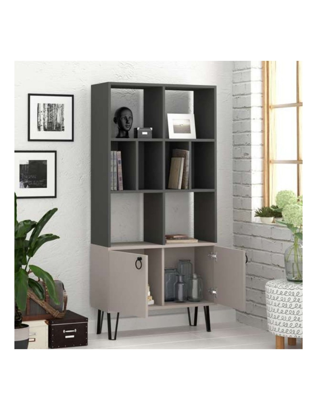 Libreria caratterizzata da un forte stile scandinavo. Bella, solida ma soprattutto funzionale. Puoi combinare l'utilizzo della classica libreria a giorno con due comode ante. Perfetto per arredare con originalità il tuo ufficio, lo studio oppure i tuoi ambienti di casa. I piedini e le maniglie in metallo donano un tocco di raffinatezza.