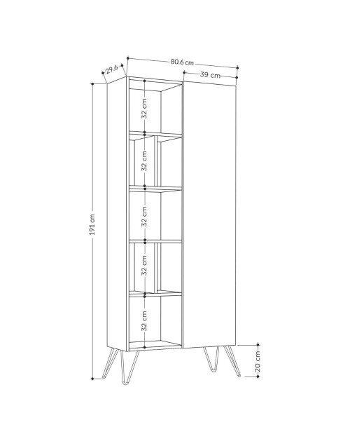 - Misure 80,6x29,6x191 h cm. (vedi dettagli in foto).