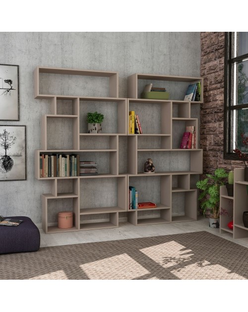 La Libreria di design Karmato tortora caratterizzata da un'estrema versatilità. Puoi posizionarla in modo orizzontale o verticale a seconda delle tue esigenze. Puoi anche posizionarla come divisorio di due ambienti in quanto è bifacciale. I numerosi ripiani ti aiuteranno a riporre in modo originale libri, piante e altri complementi d'arredo. Le sue linee geometriche si sposano con ogni stanza come salotto, studio, soggiorno e ufficio. Se vuoi aumentare la superficie espositiva ma anche creare un effetto originale, puoi posizionare due librerie una accanto all'altra.