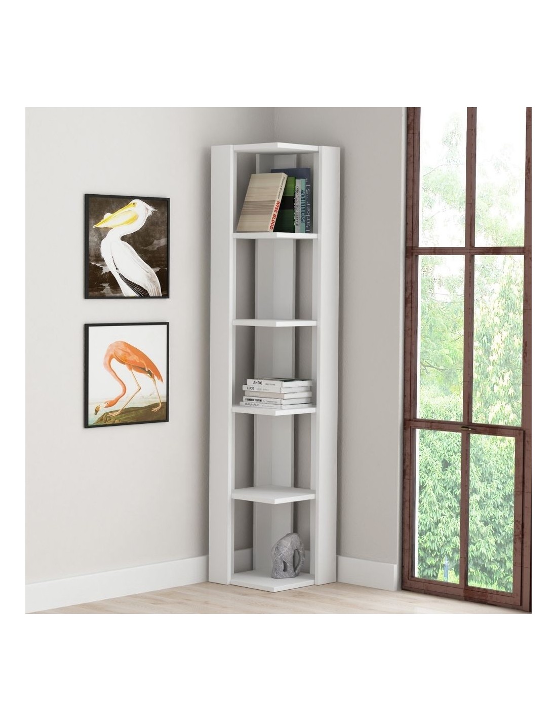 Libreria angolare bianca 5 ripiani 34x34x161 Nati