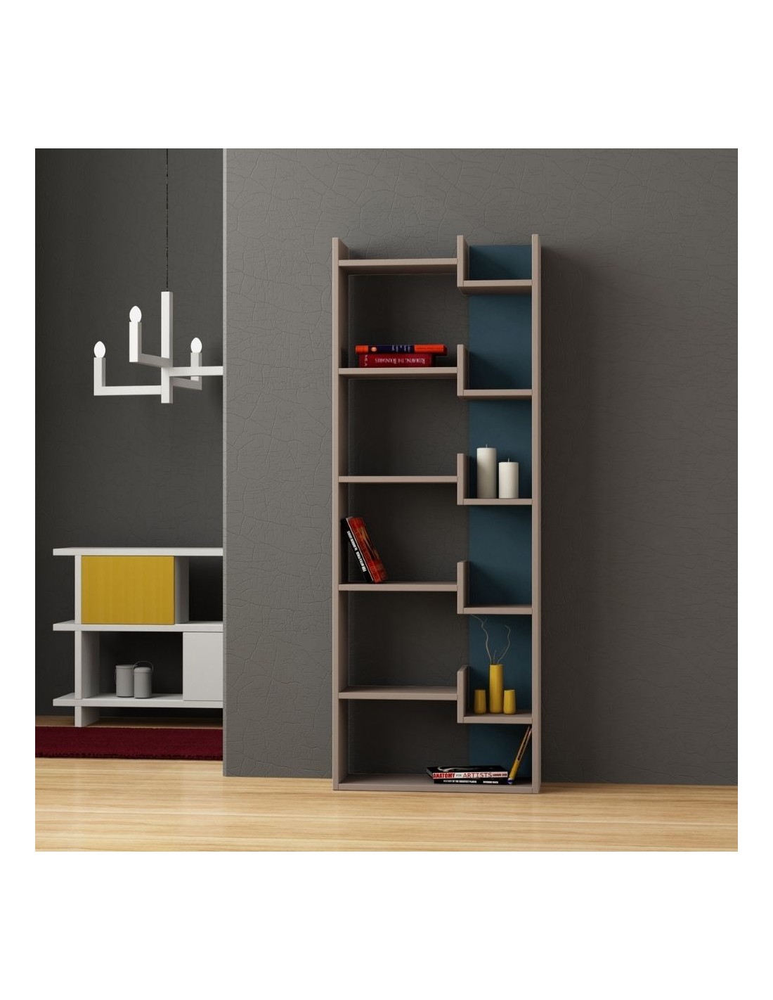 Libreria doppio colore composta da una struttura con ripiani a sbalzo ed un pannello posteriore a contrasto. Mobile perfetto che coniuga stile e praticità. Puoi posizionarla nel salotto, nello studio, in ufficio oppure in cameretta. Si adatta facilmente ad ogni stanza grazie alle sue linee geometriche e ai colori neutri. Metti in ordini i tuoi libri in modo originale e disponi a tuo piacimento i tuo oggetti.