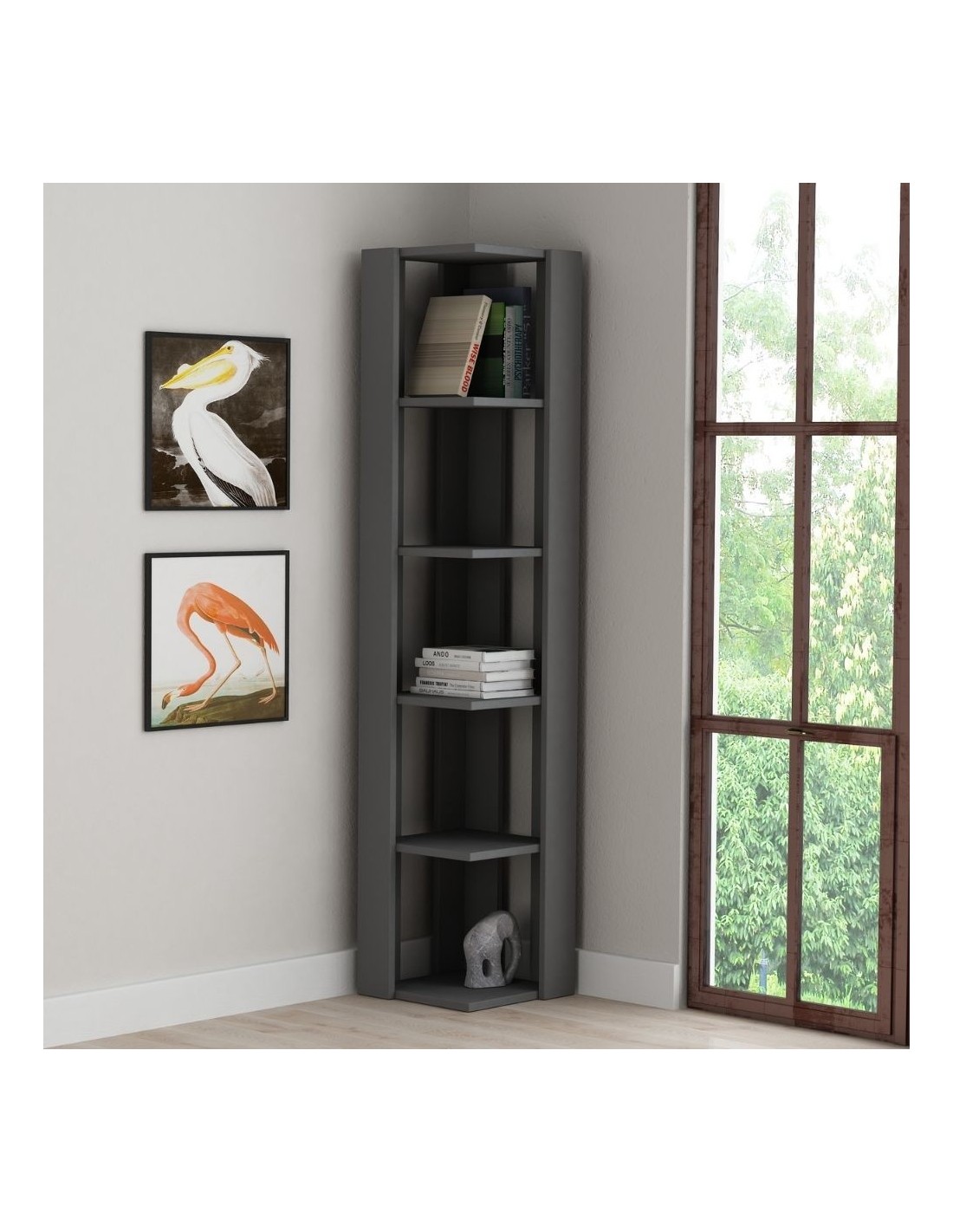Libreria angolare antracite 5 ripiani 34x34x161 Nati