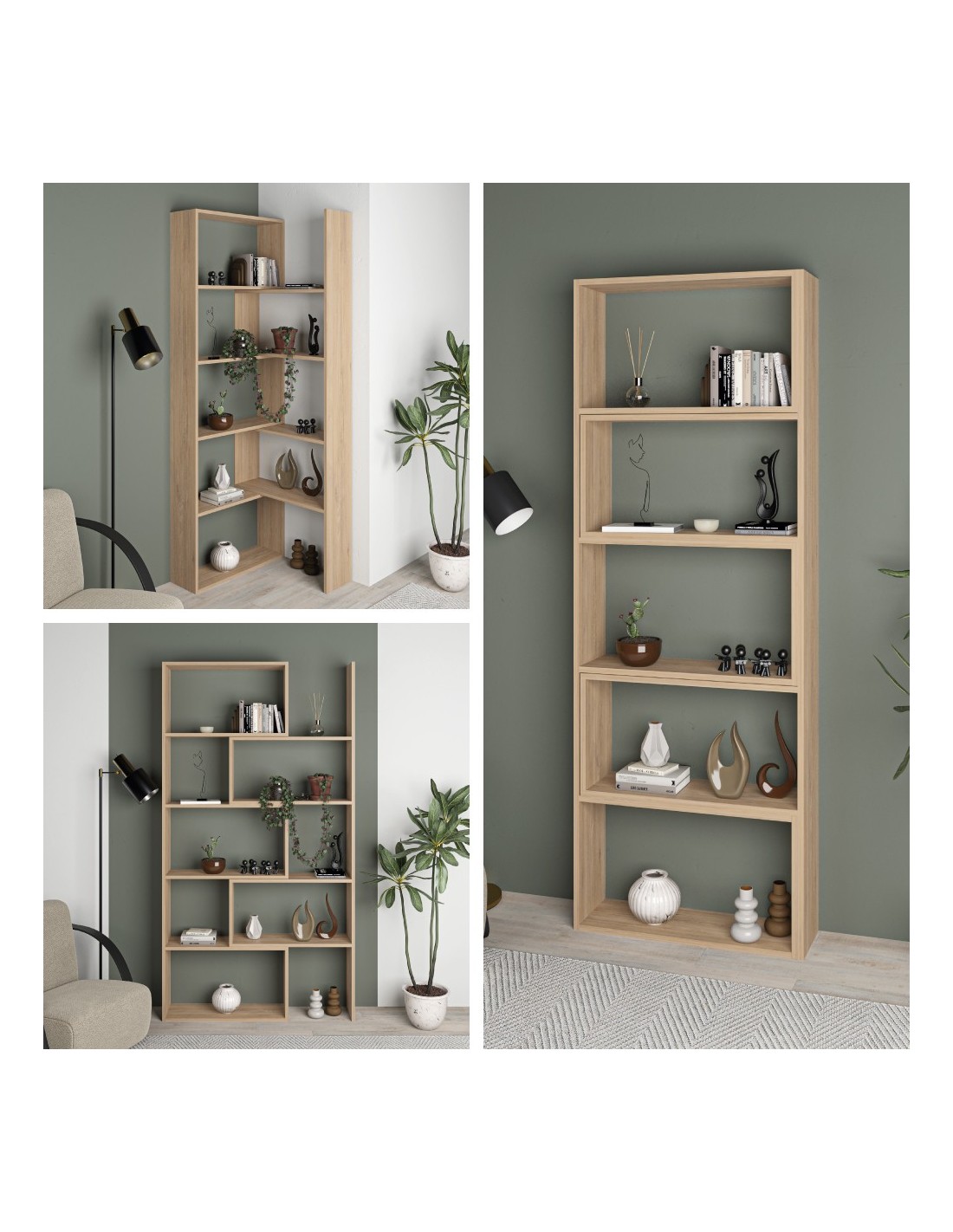 Libreria dal design moderno che si adatta ad ogni ambiente e spazio. Grazie ai due corpi che la compongono è possibile montarla in modo lineare, angolare oppure allungarla. Nei 5 scomparti troveranno posto tutti i tuoi oggetti e libri. Viene costruita con materiali di qualità quindi realizzata per durare nel tempo.