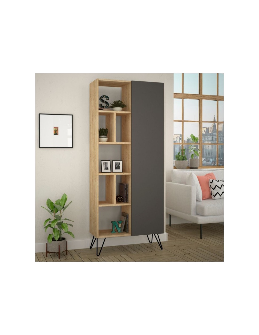 Libreria rovere con anta antracite Jedda 80,6x191