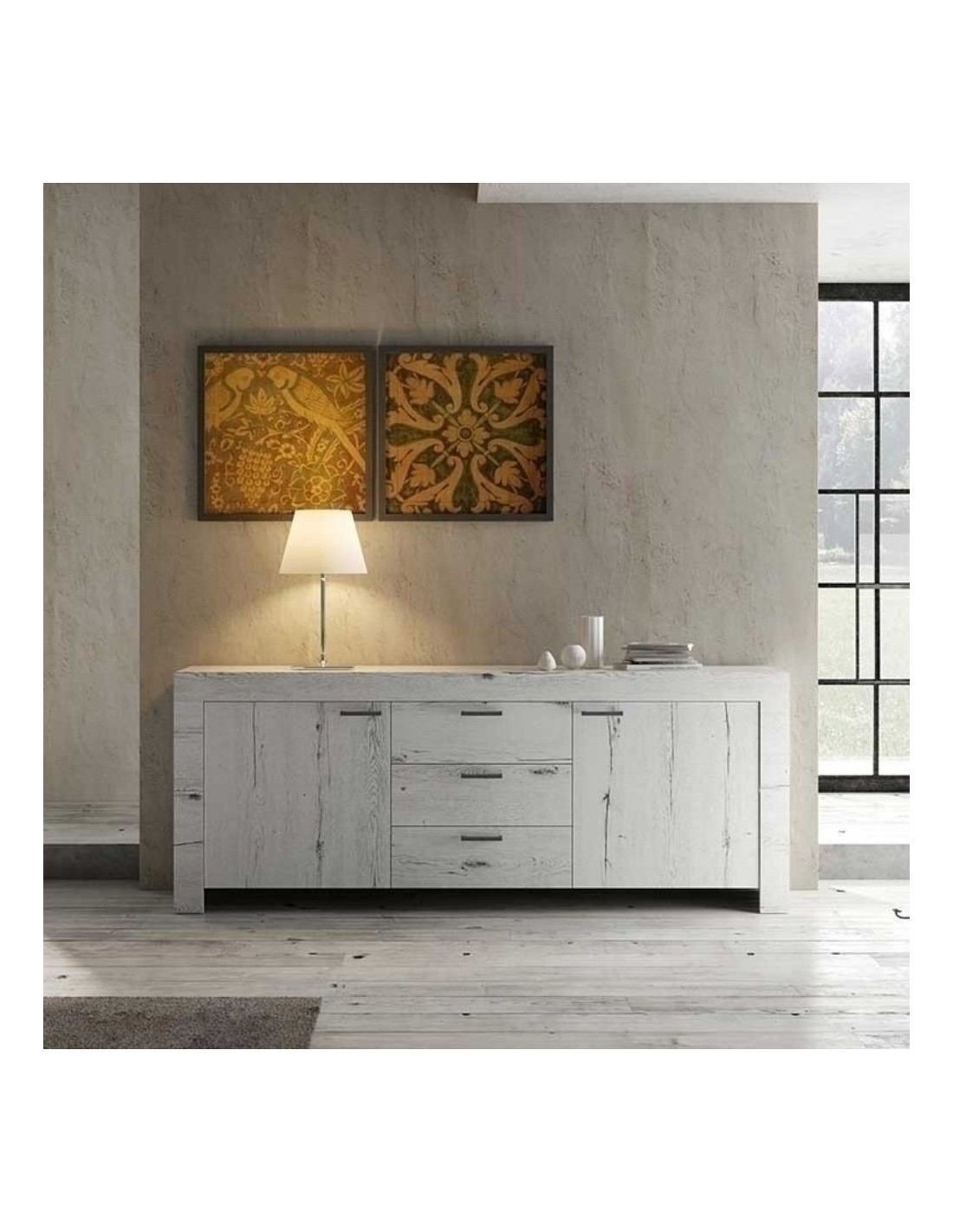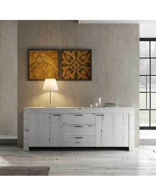 Kreda è un mobile credenza in stile shabby chic a 2 ante con apertura a battente e 3 cassetti.