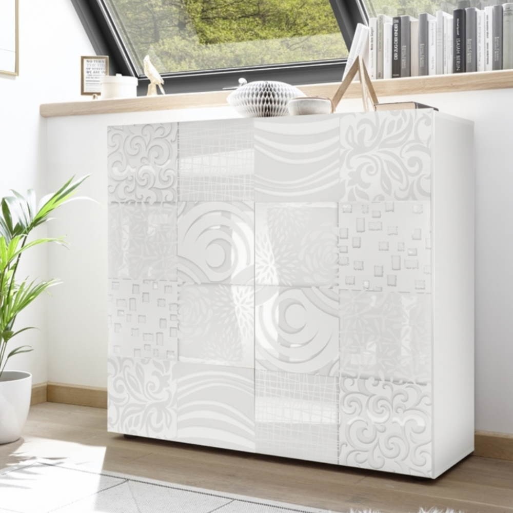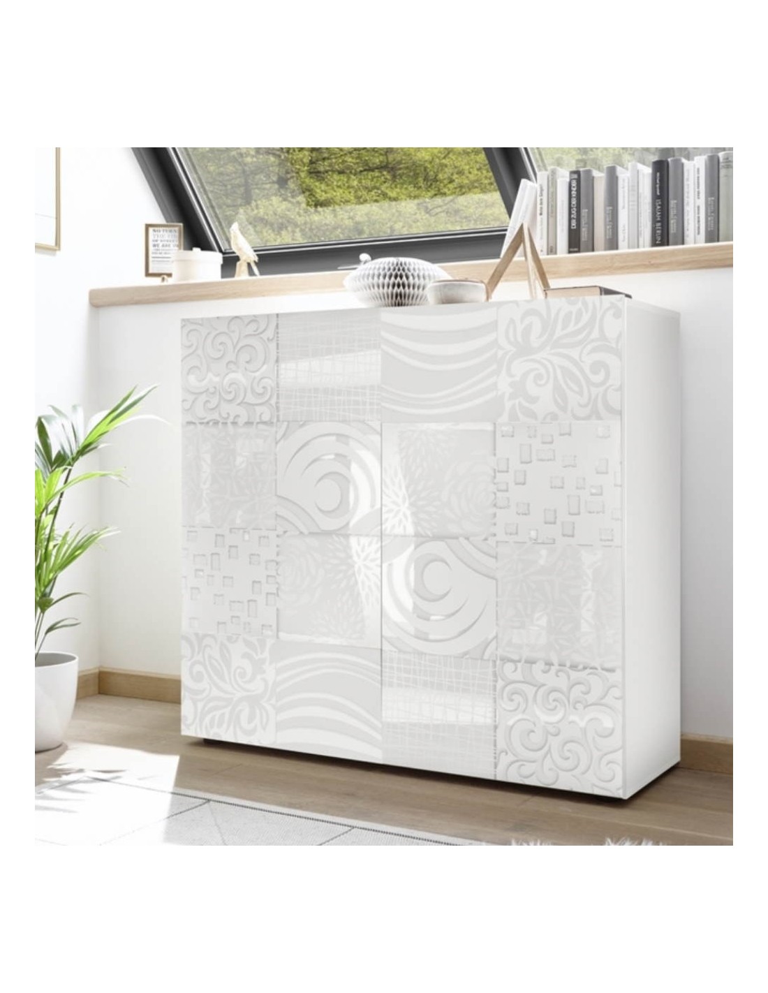 Mobile contenitore 2 ante in finitura bianco serigrafato.