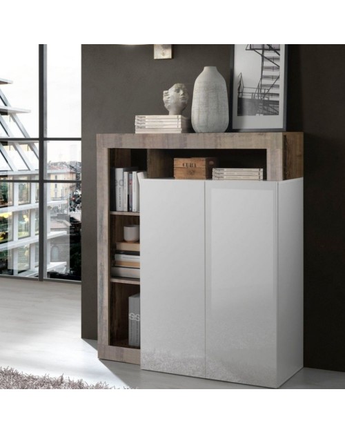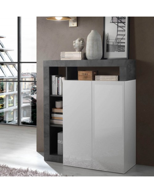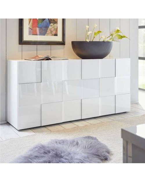 Madia due ante e quattro cassetti Artica colore bianco lucido