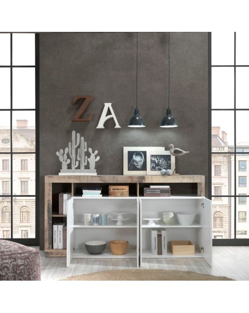La madia Mogol 4 ante è caratterizzata dal moderno design italiano. Una riuscita combinazione di colori con elementi bianchi, frontale in laccato lucido combinato con una cornice colore pero.