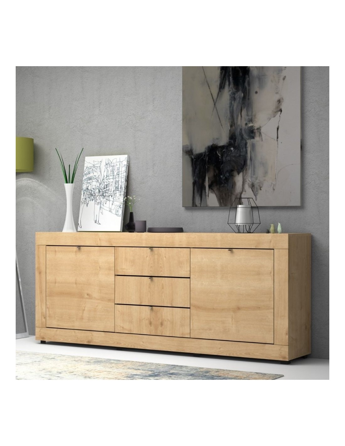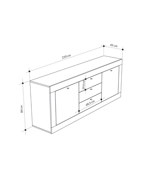 Mobile spazioso e capiente, può contenere anche oggetti di grande dimensioni grazie alla generosità delle sue misure. Lo stile è contemporaneo e moderno e si adatta con facilità a tutti i tuoi ambienti. Due ampie ante e ben 3 cassetti, ti aiuteranno ad organizzare ottimamente gli spazi.