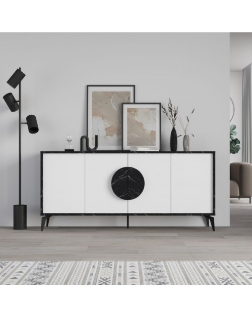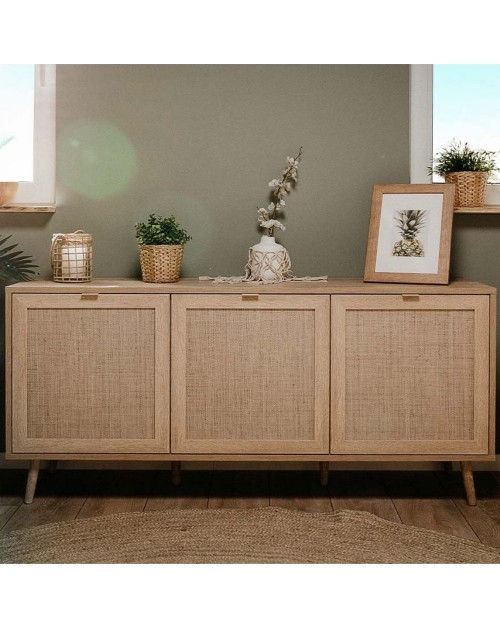 Raffinata madia dotata di 3 ante. Si caratterizza per l'utilizzo di finiture naturali come le ante effetto vimini e la struttura nel colore quercia. Mobile ideale per chi vuole rendere originale ed unico ogni ambiente.