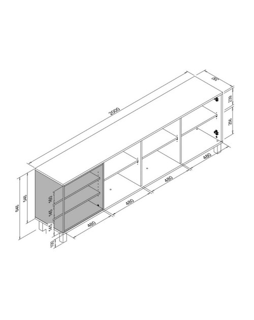 Misure 200x35x64,5H cm.