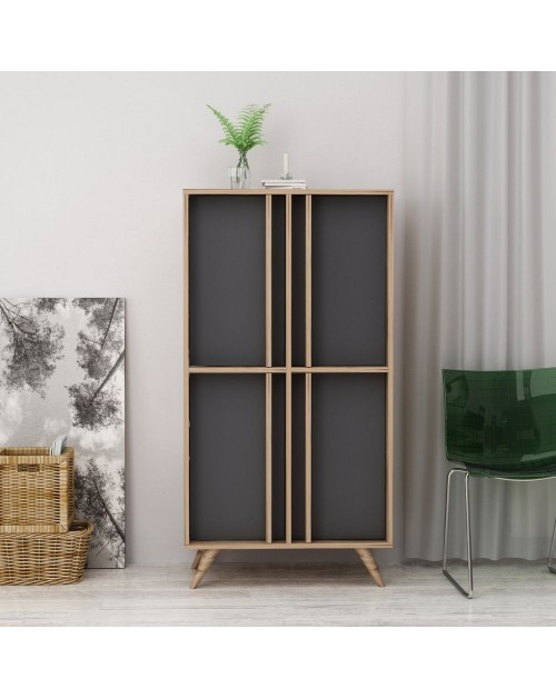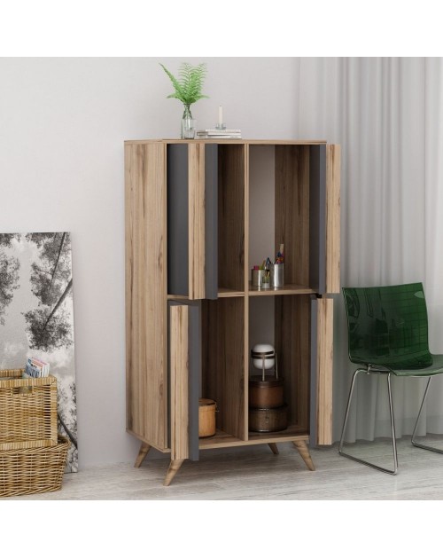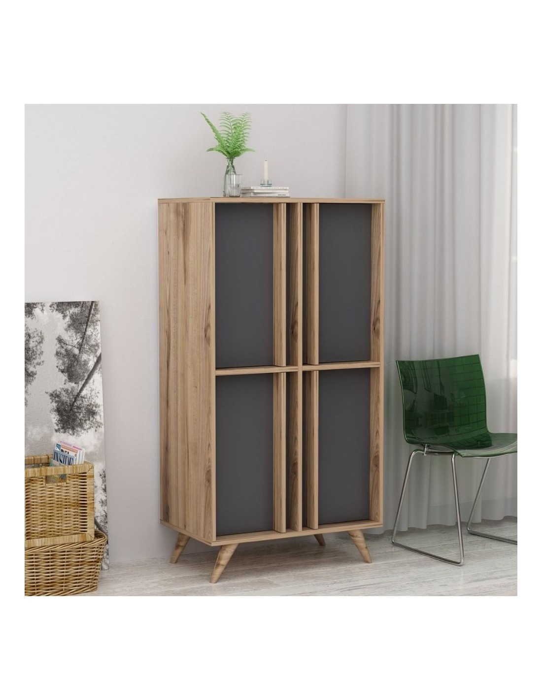 Credenza alta 4 ante antracite noce Rilla 72x139