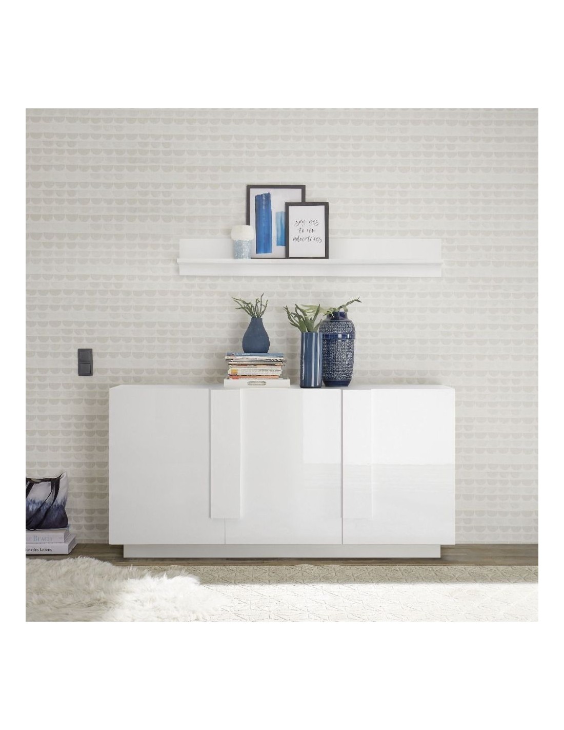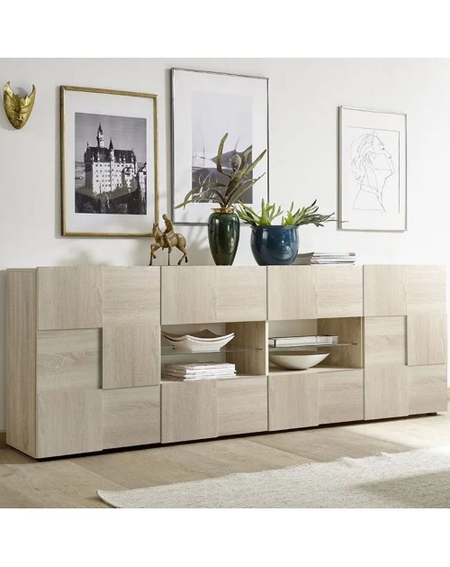 Madia 3 ante in finitura rovere serigrafato .