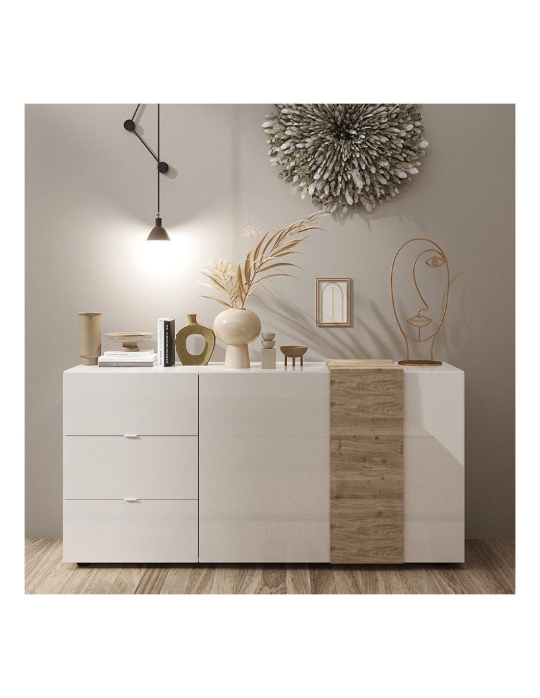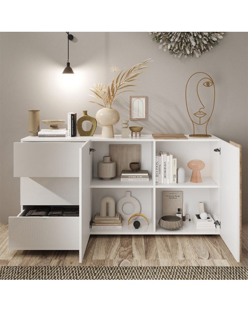 Madia bianco lucido rovere Kadiz 2 ante 3 cassetti Sabry