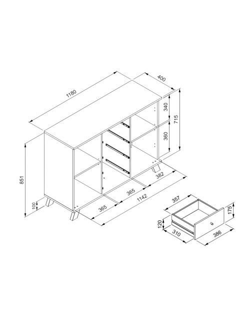 Madia 2 ante e 4 cassetti rovere antracite Medan01B
