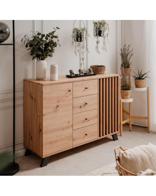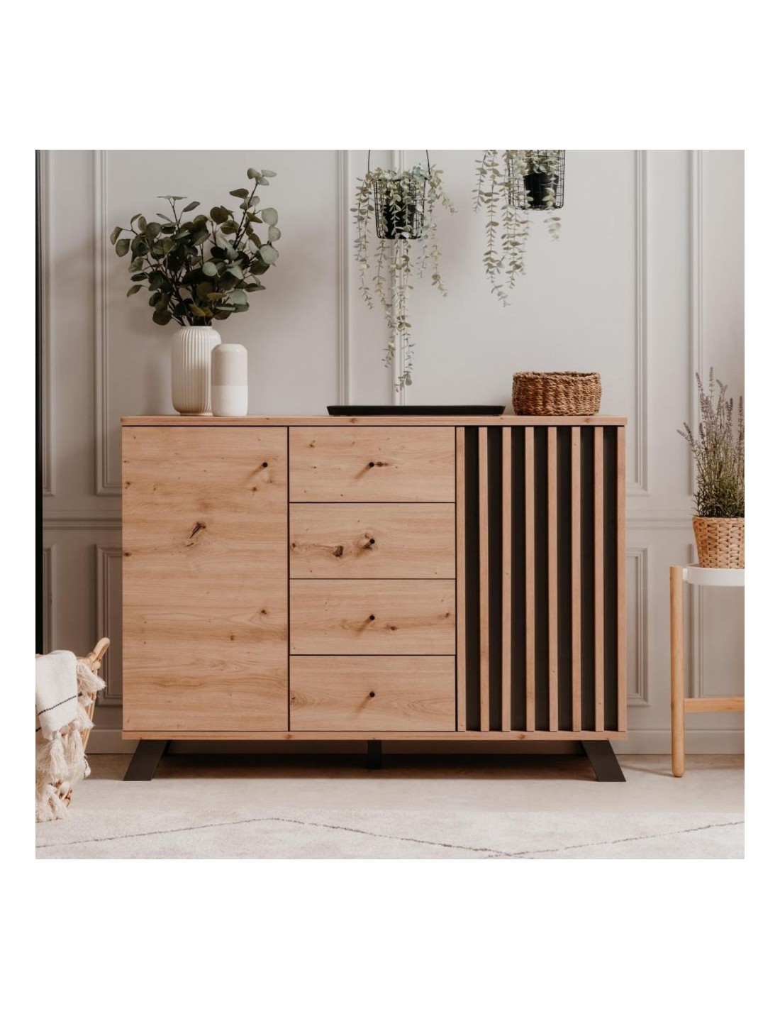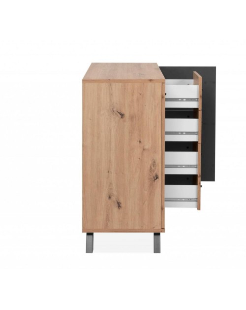 La madia 2 ante e 4 cassetti Medan01B è progettata per chi cerca un design moderno e raffinato. E'dotata di due ante e 4 cassetti dove potrai riporre oggetti e stoviglie ottimizzando gli spazi. Particolare è la presenza di doghe rovere su fondo antracite. Puoi posizionarla nel salotto, in cucina oppure nel corridoio. Il suo colore naturale la rende facile da abbinare ad ogni ambiente, sia moderno che contemporaneo. Costruita con materiali di alta qualità per durare nel tempo.