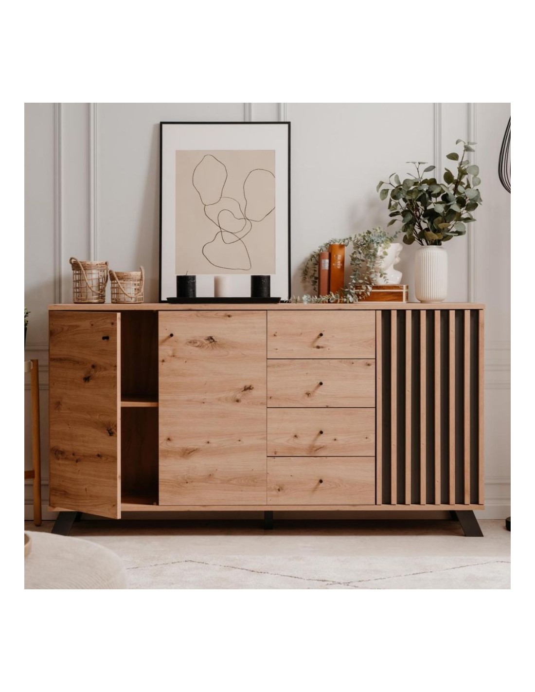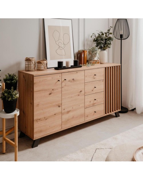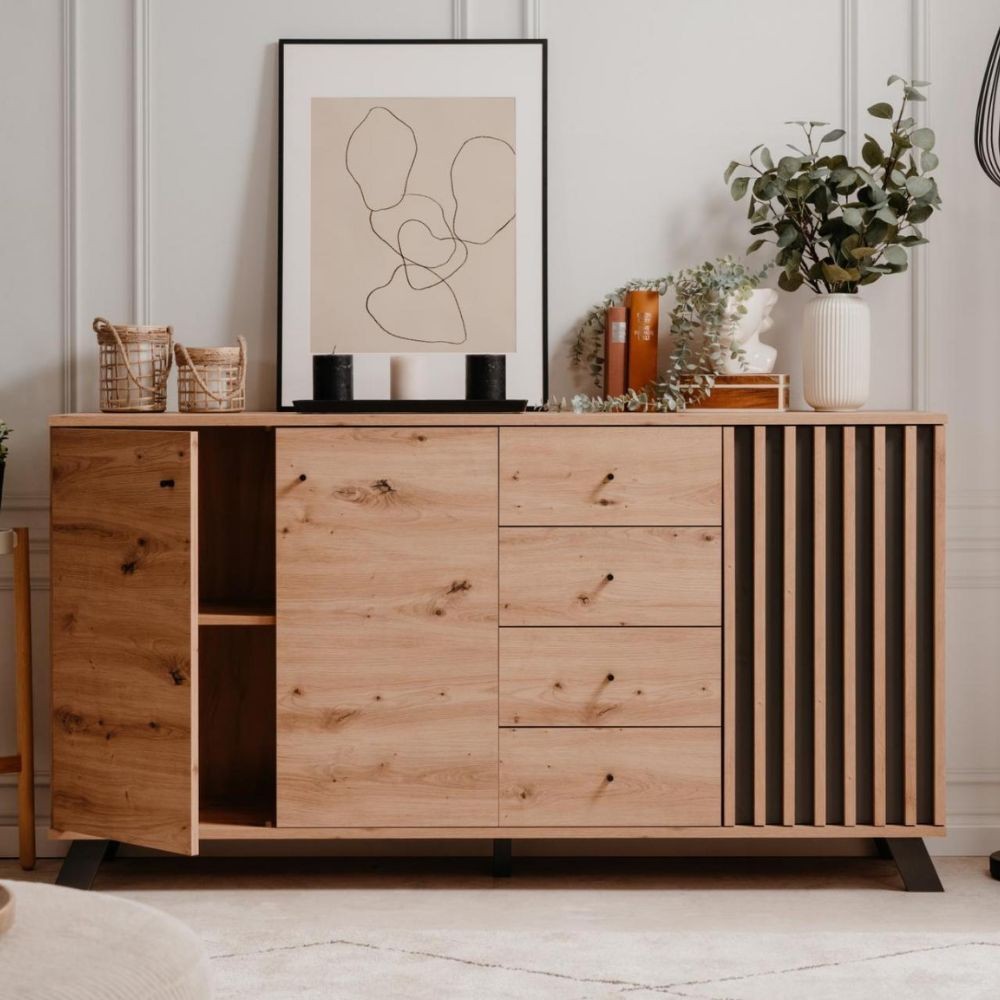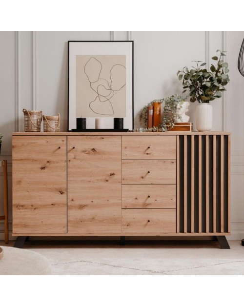 La madia 3 ante e 4 cassetti Medan51C è progettata per chi cerca un design moderno e raffinato. E'dotata di tre ante e 4 cassetti dove potrai riporre oggetti e stoviglie ottimizzando gli spazi. Particolare è la presenza di doghe rovere su fondo antracite. Puoi posizionarla nel salotto, in cucina oppure nel corridoio. Il suo colore naturale la rende facile da abbinare ad ogni ambiente, sia moderno che contemporaneo. Costruita con materiali di alta qualità per durare nel tempo.
