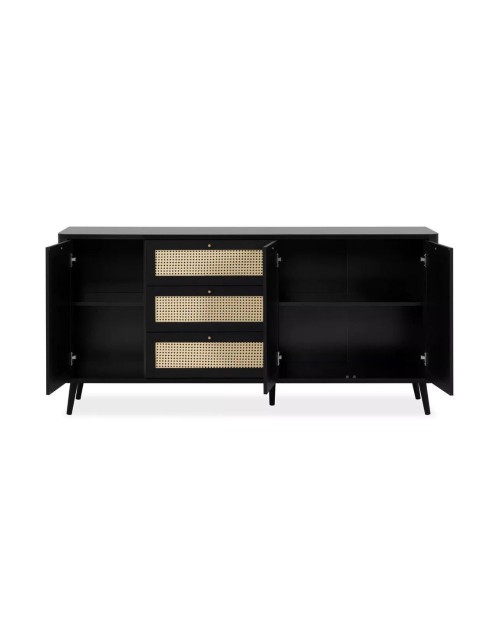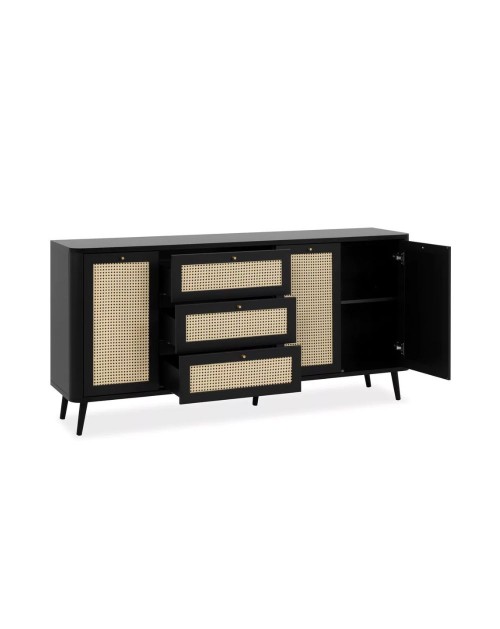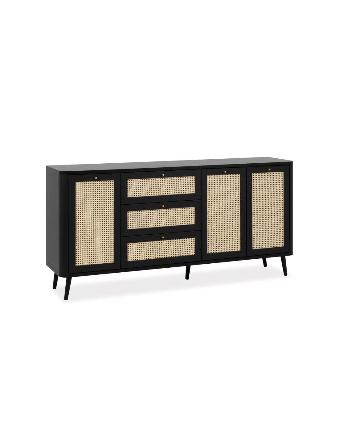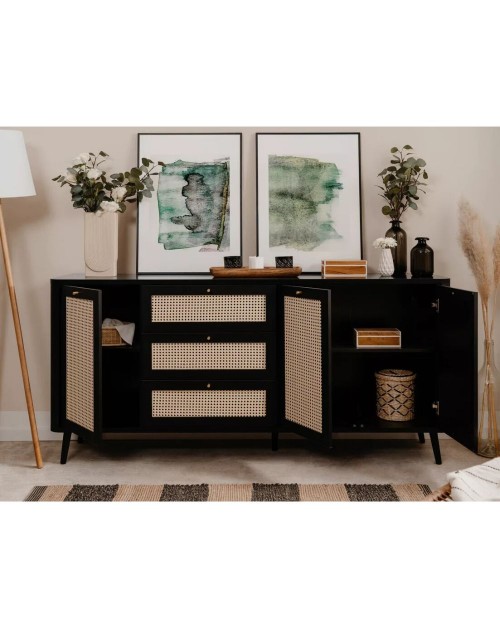 Madia 3 cassetti e 3 ante effetto rafia KUTA51A nera