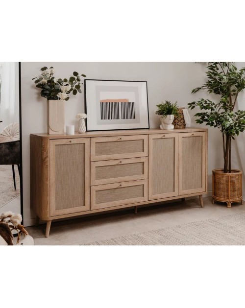 Madia 3 cassetti e 3 ante effetto rafia KUTA51A rovere sonoma
