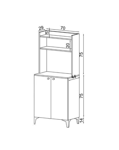 Misura L 70 x P 44 x H 164 cm.