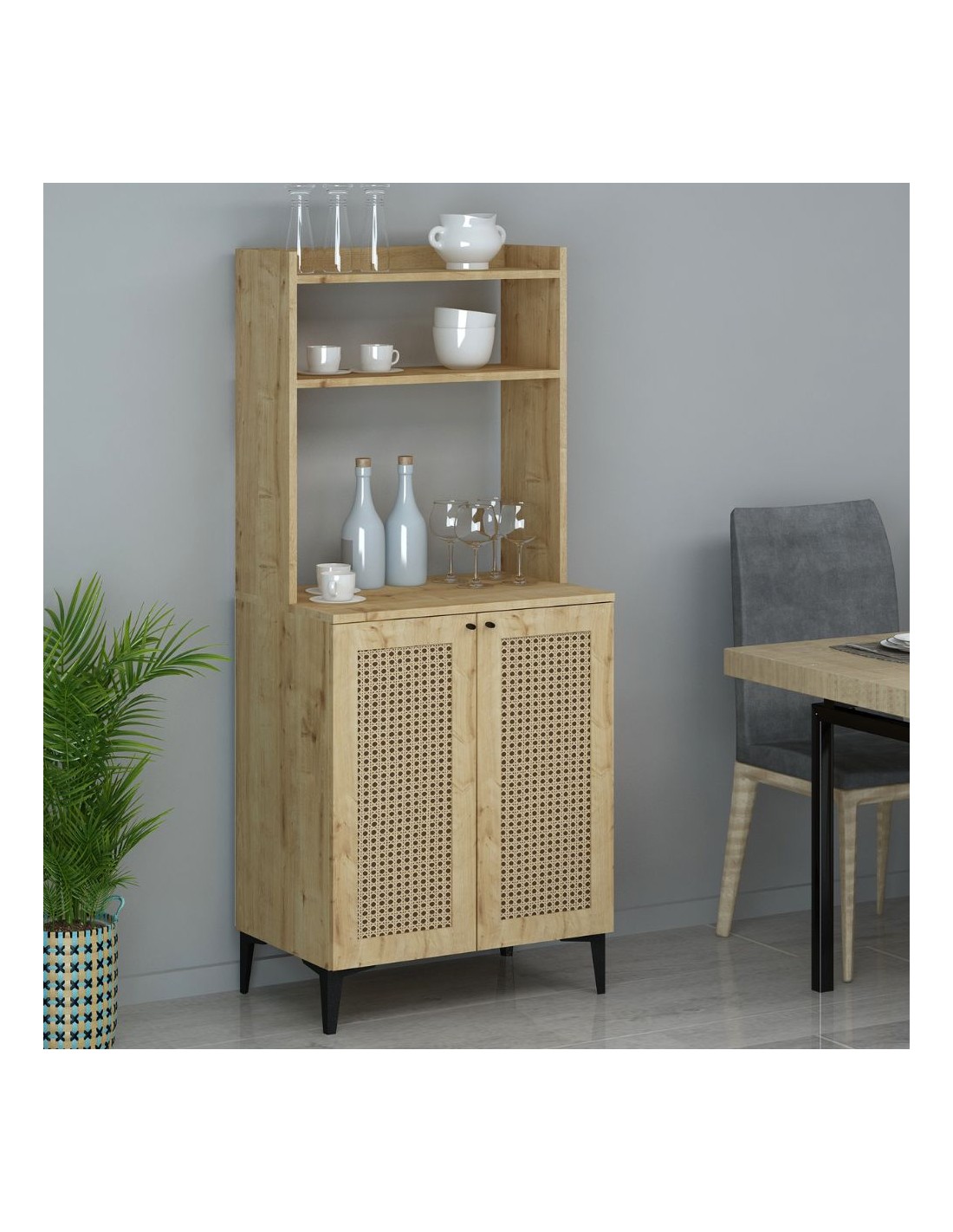 Credenza alta 2 ante e vani a giorno rovere Zanne