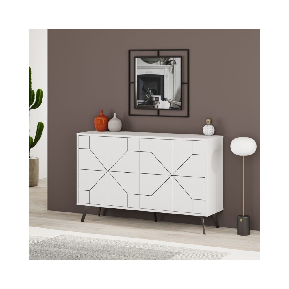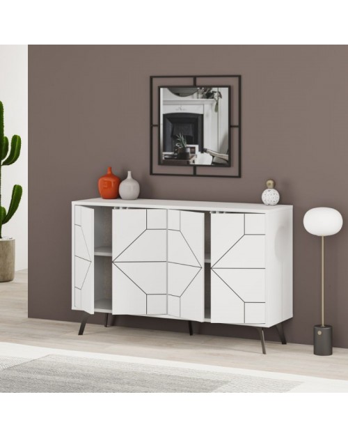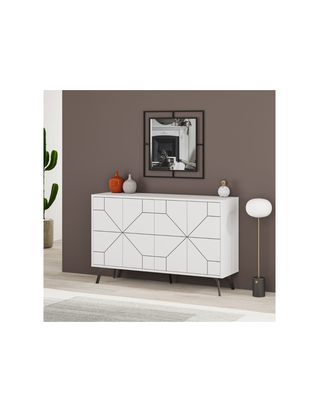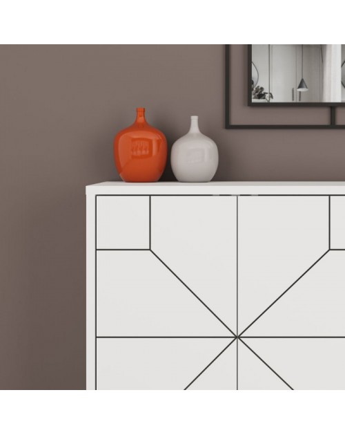 La Madia Dune bianca si caratterizza per il disegno geometrico sulle ante. Grazie alla sua generosa capienza riuscirà a garantirti ordine in casa e potrai posizionare in modo ottimale tutte le tue cose. Le linee sono semplici e sobrie e risultano molto eleganti. Questa madia garantirà funzionalità ma soprattutto una ventata di stile ovunque verrà posizionata, che si tratta di salotto, camera da letto oppure all'ingresso.
