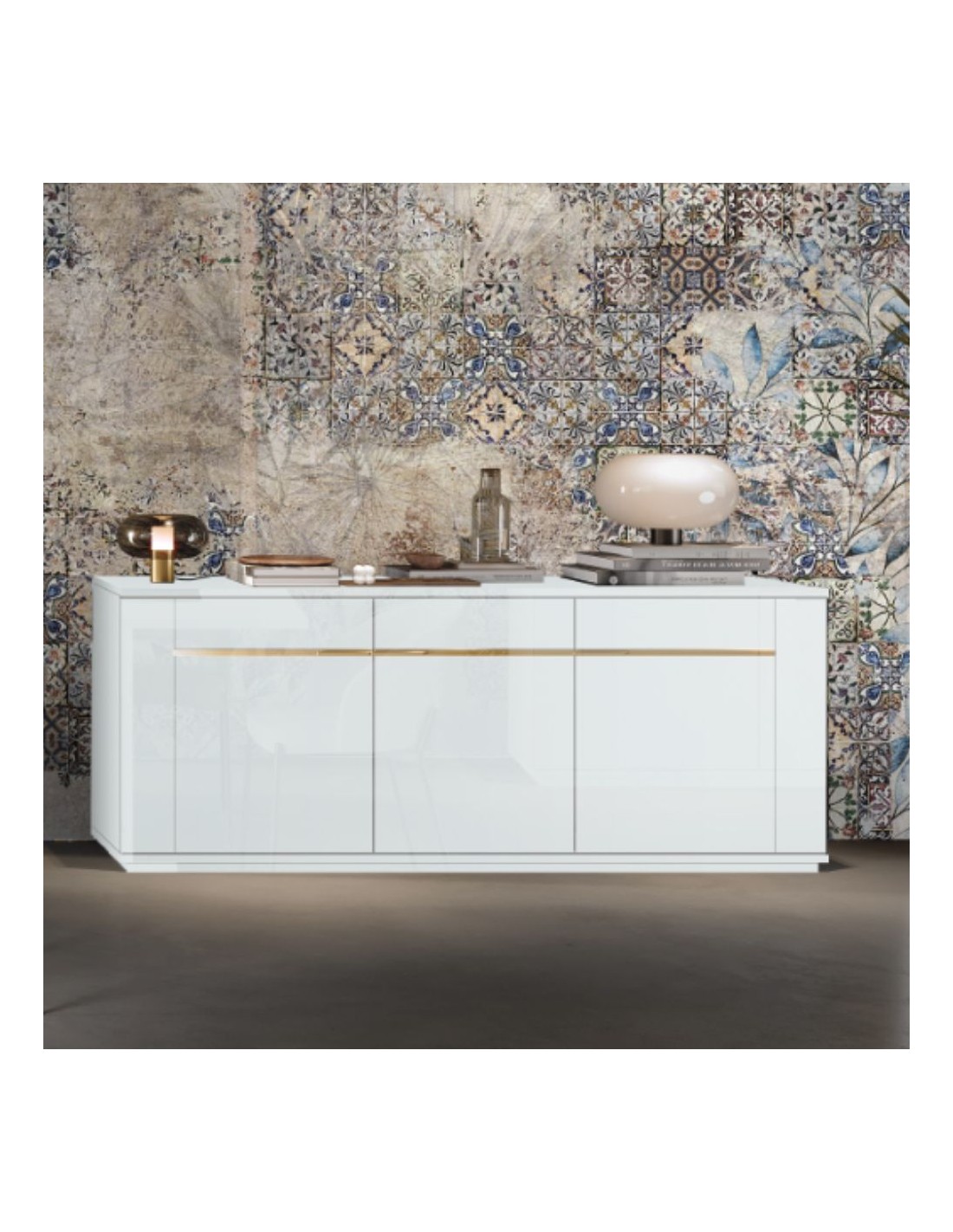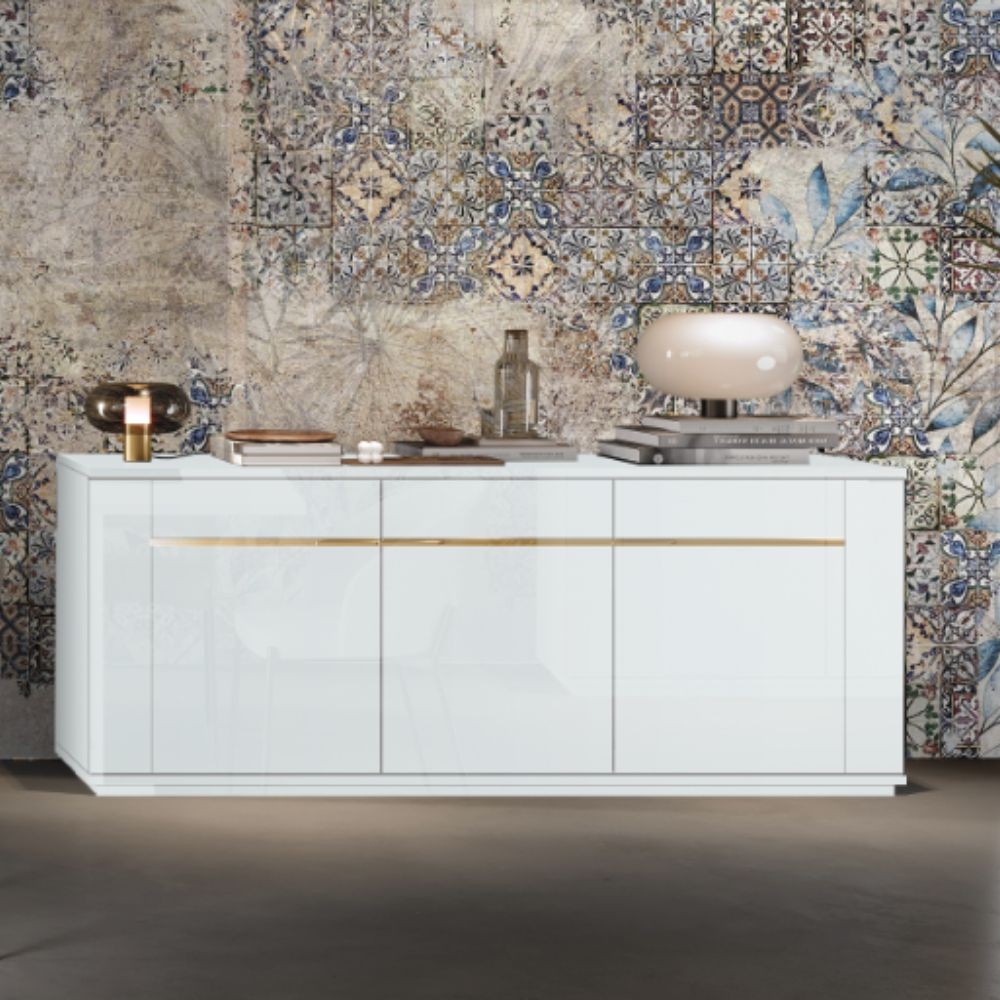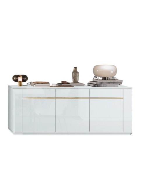 Madia 3 ante bianco lucido laccato con particolari oro Alce 205x49x83h