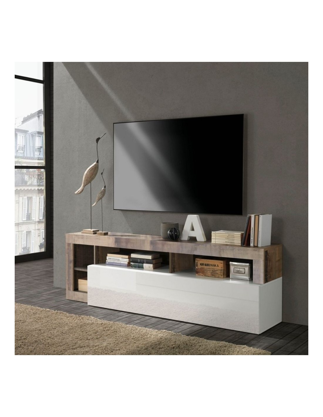 Porta TV Mogol bianco lucido pero 184x42x58H