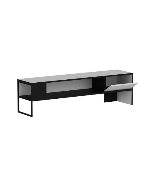 Porta tv caratterizzato dallo stile minimalista e da doppio ripiano. Estetica moderna e funzionalità sono i suoi punti di forza oltre al facile abbinamento grazie ai colori bianco e nero. Comod e funzionale il vano chiuso da anta a ribalta. Ideale non solo per appoggiare la tv ma anche dispositivi elettronici, riviste e libri. Solido e robusto è progettato per durare nel tempo.