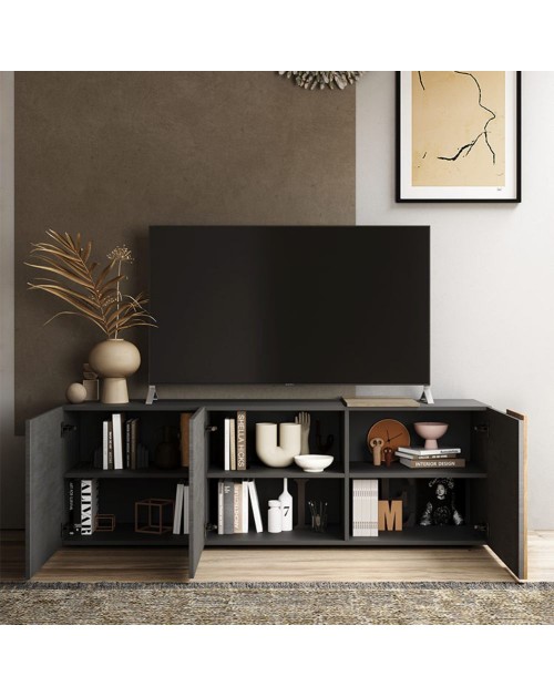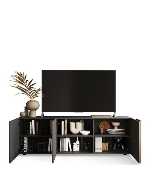Il porta TV 3 ante Sabry 181x44x59h nella finitura titanio rovere kadiz è la soluzione per arredare il proprio soggiorno in modo funzionale ed elegante.