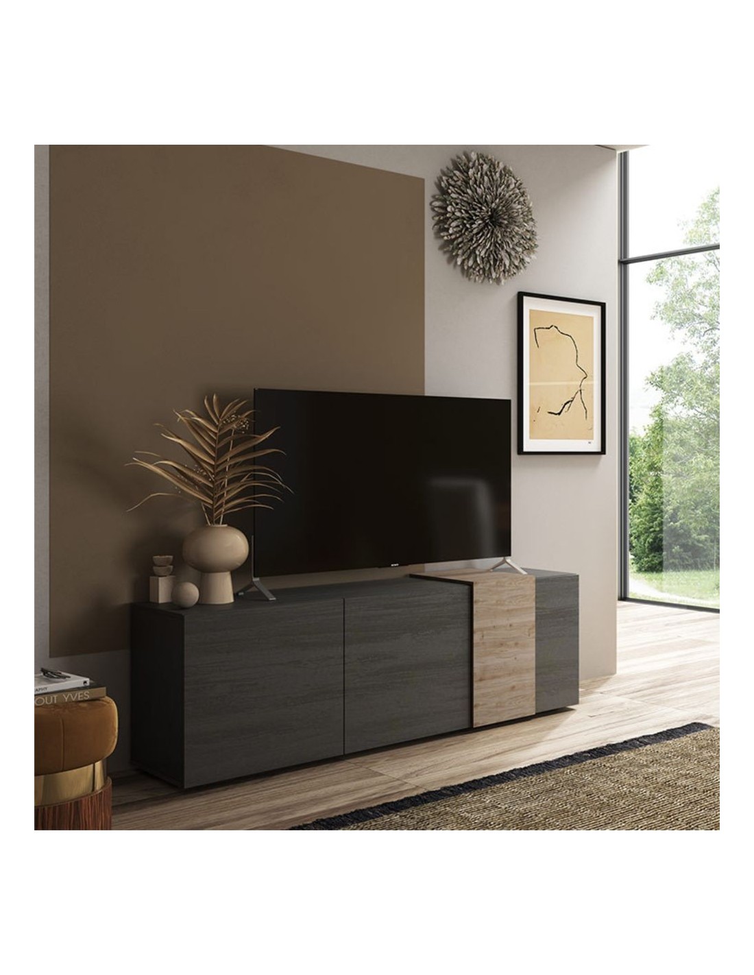 Porta TV titanio rovere Kadiz 3 ante Sabry