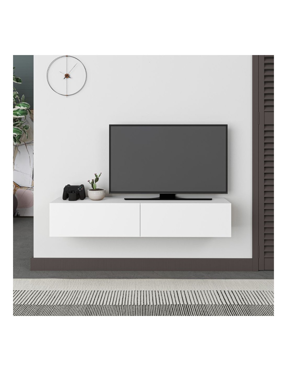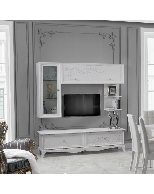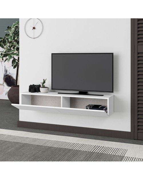 Porta TV bianco vintage e struttura antracite con 2 ante Klappe 125,5x33x56,5