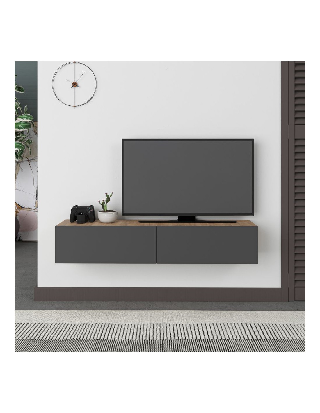 Il mobile porta TV sospeso Francy rovere antracite è la perfetta combinazione tra eleganza e funzionalità. E' dotato di due ante a ribalta dove potrai riporre i tuoi dispositivi elettronici oppure oggetti. Il piano superiore è adatto per TV fino a 55 pollici.
