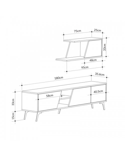 - Misure: L 180 x P 35,6 x H 48 cm.