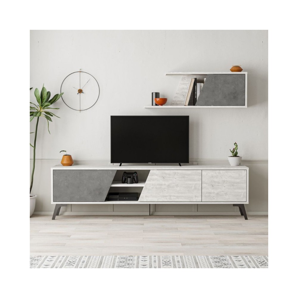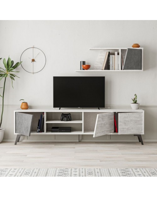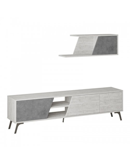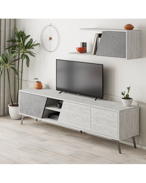 Porta TV bianco vintage cemento Fiona 180X35,6X48 con mensola a parete