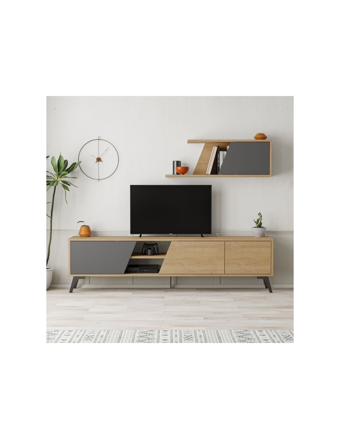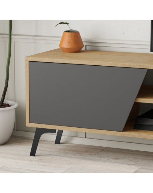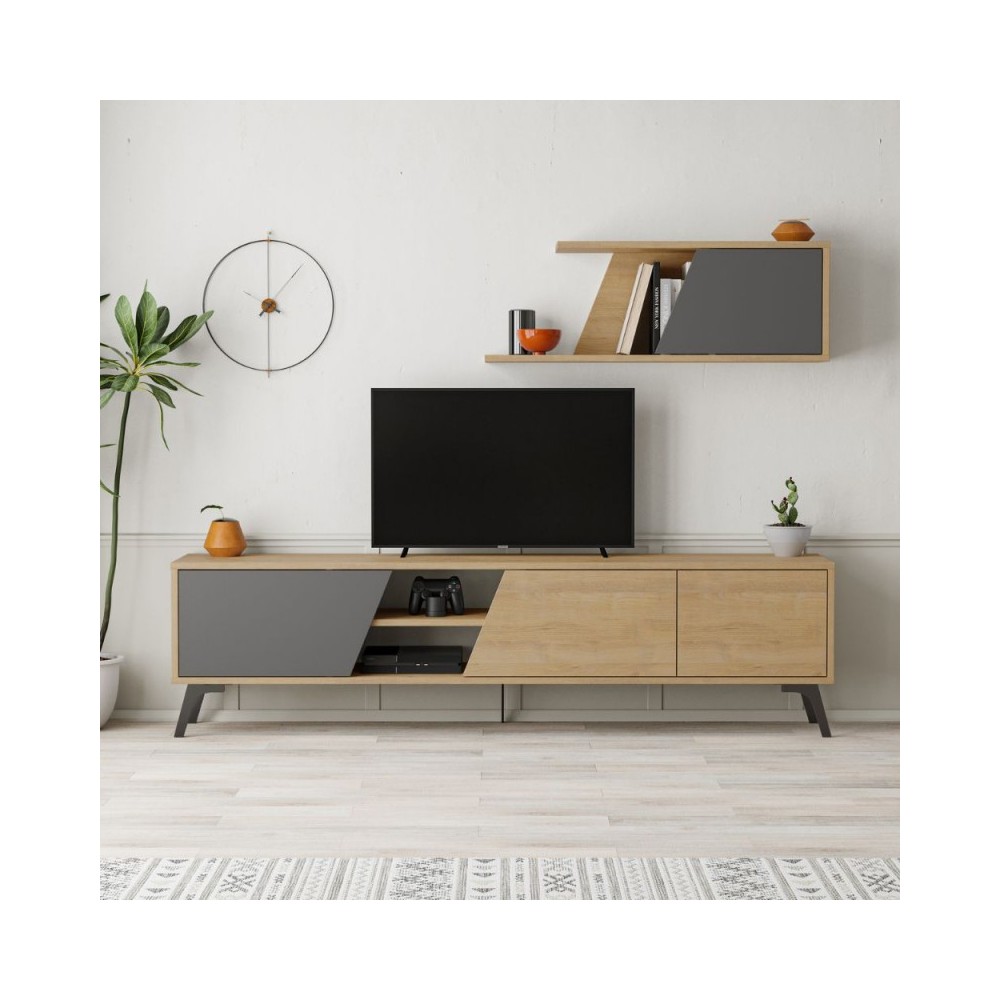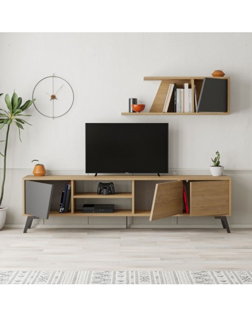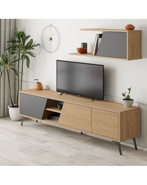 Porta TV rovere antracite Fiona 180X35,6X48 con mensola a parete