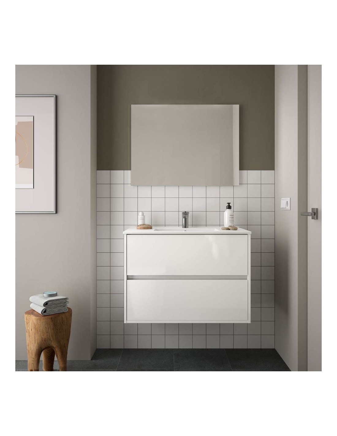 Mobile bagno sospeso bianco lucido 90x48x55 Lesina