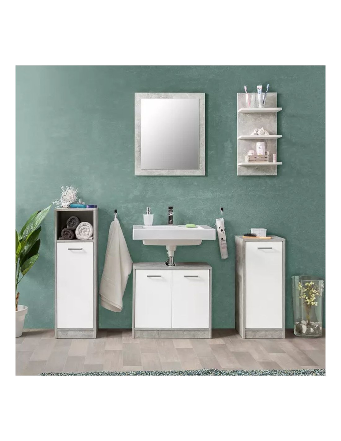 Mobile bagno sospeso fango 2 cassetti con lavabo e specchio COMP100FA 101x46x54h