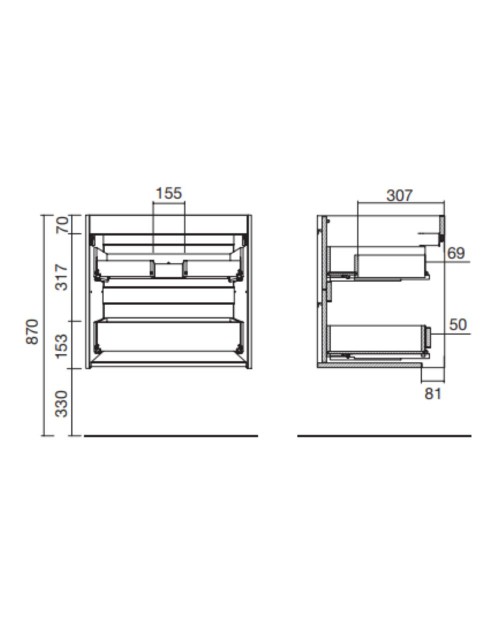 2 cassetti portata max 20 kg ciascuno con chiusura ammortizzata.